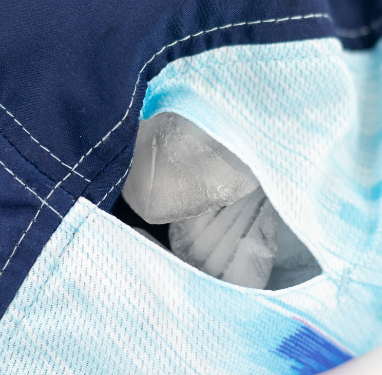 Hidden pockets for ice, dry tech polyester mesh side gussets on the top, light wicking material and a soft mesh wicking sweatband help move sweat and water away from your eyes while keeping you from overheating.