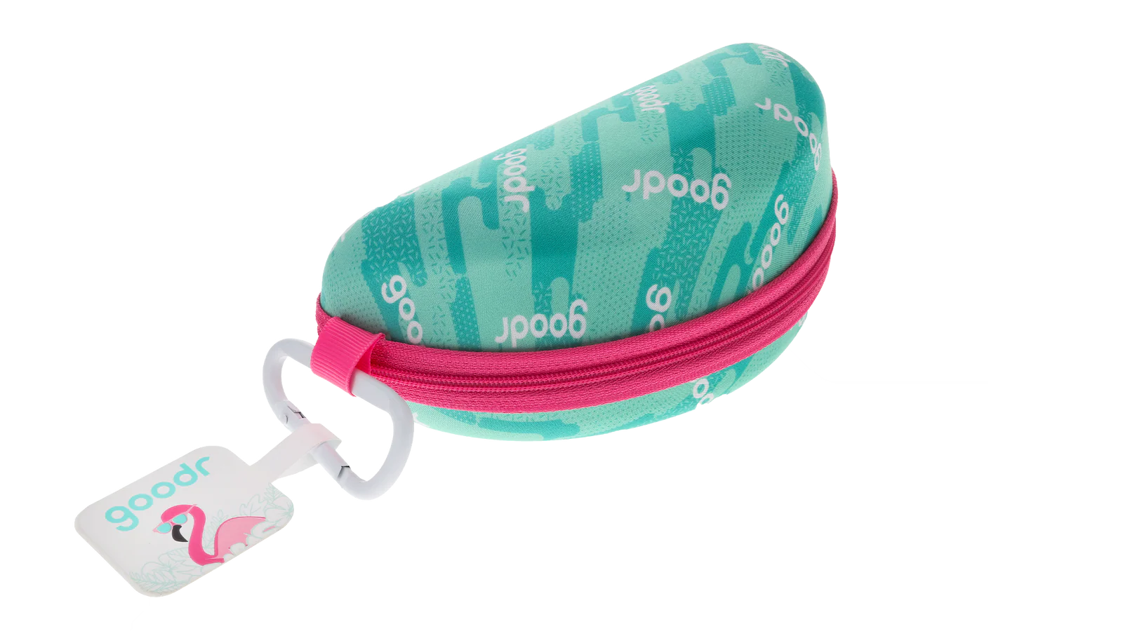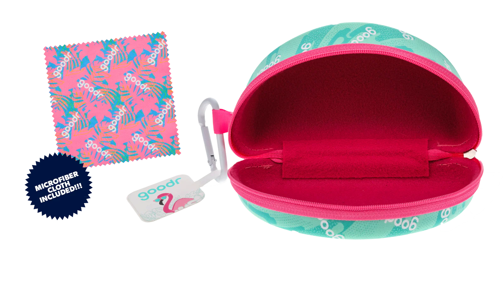 Wrap sunglasses give extra coverage and protection, so why not give them the same?! This Gnarliest Case Scenario hard sunglasses case is zipper-enclosed with a super soft inside lining to keep you (and your sunnies) covered. As an added bonus, this stylish teal and pink protective case also comes equipped with a microfiber cleaning cloth and a carabiner for easy portability.