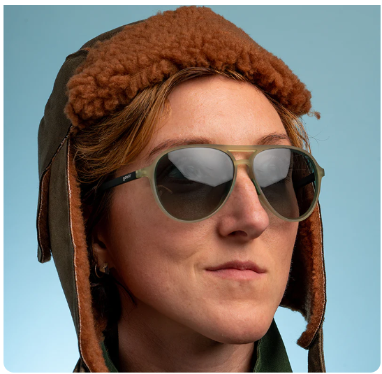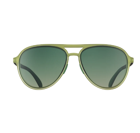 Cadet green aviator sunglasses designed to fulfill a (metaphorical) need for speed. Sunnies can’t make you run faster, but the no slip, no bounce frames stay put while you sweat and gradient polarized lenses with UV400 protection keep your peepers safe and your vision sharp.