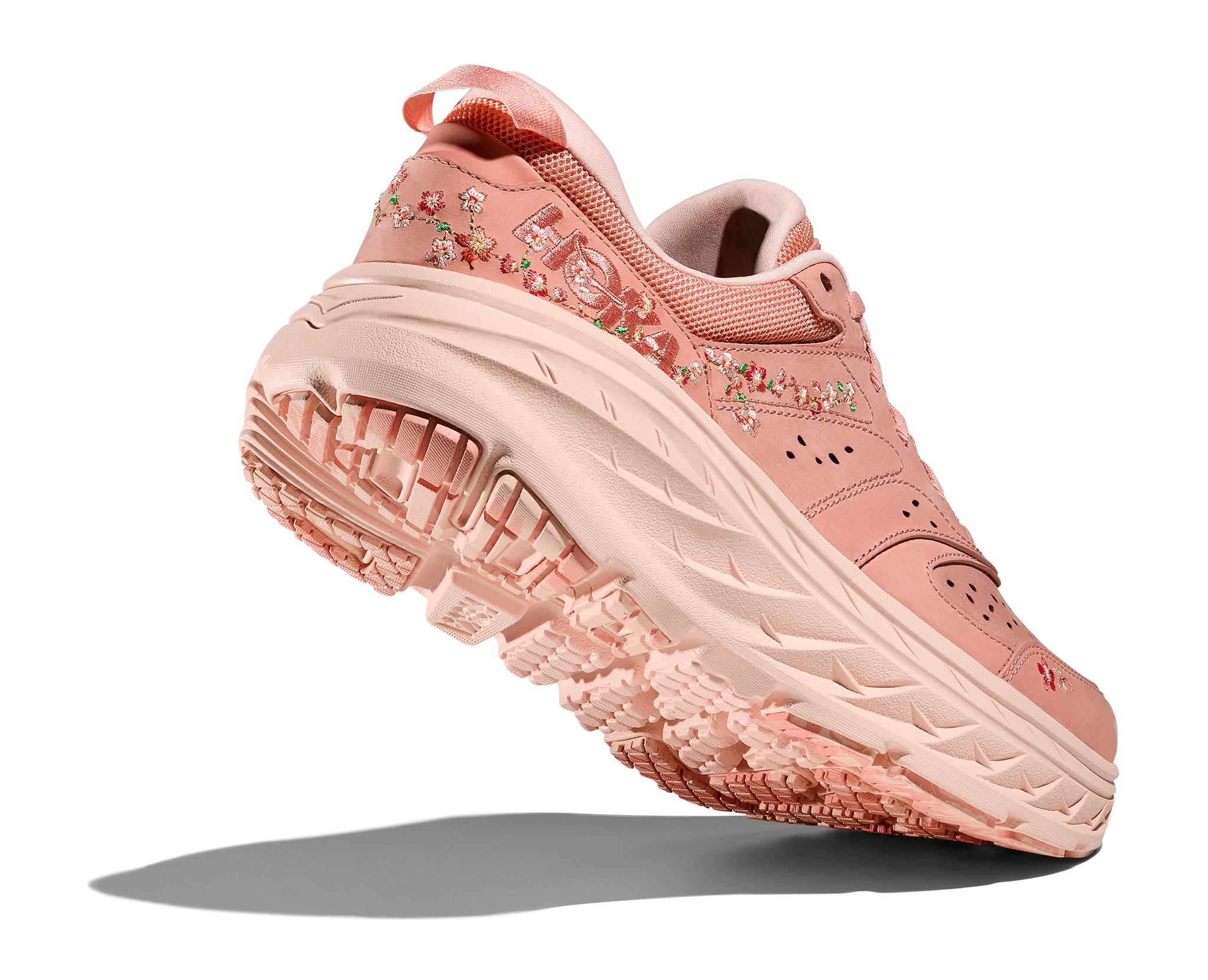 A new riff on our maximally cushioned road shoe, the Vibrant Bloom Collection Bondi L is adapted for spring adventures with fresh pops of floral embroidery. Engineered with an early stage MetaRocker™ for a smooth transition through the gait cycle, this street staple features a premium nubuck upper, perforated panels, ultralight EVA midsole and marbled outsole.