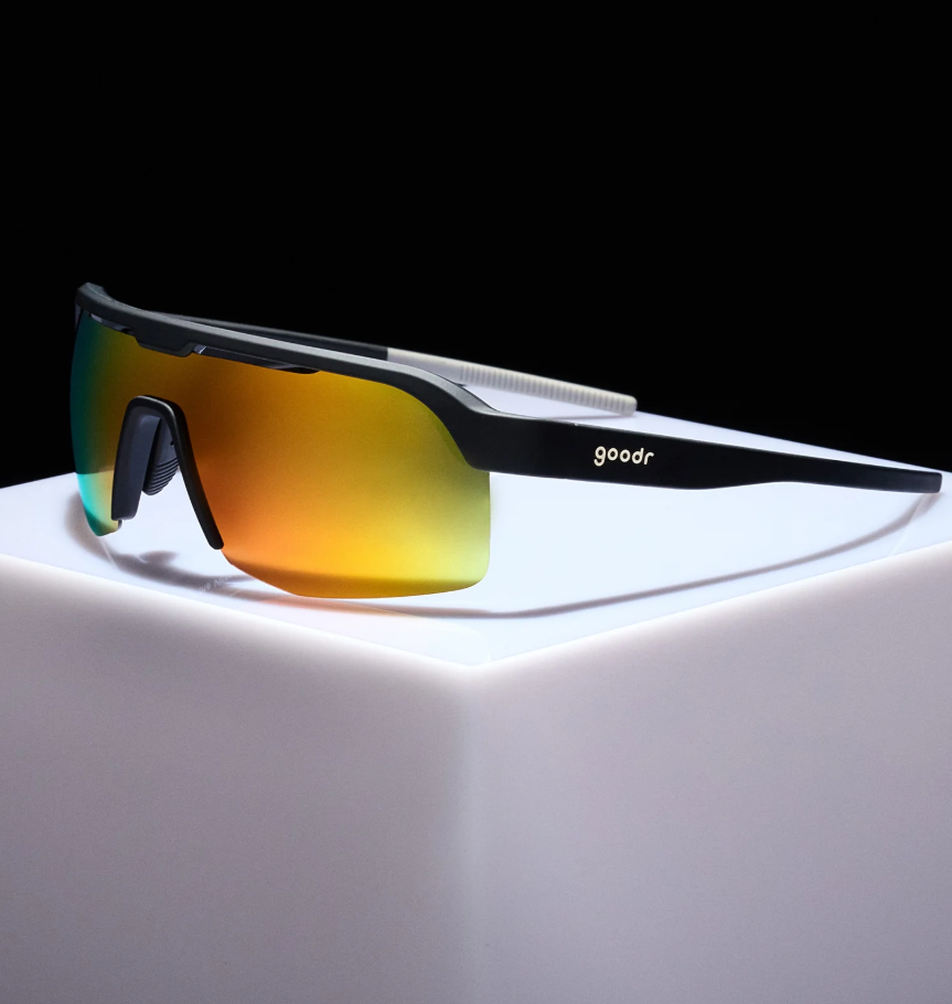 These black shield sunglasses with half-rim frames and burnt orange reflective lenses won't slip or bounce when you spike the ball and promptly follow that up with a legendary victory dance in the endzone that can only be described as a twerkout.